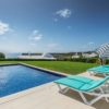 À un niveau inférieur avec accès par un escalier extérieur d'un côté de la maison se trouve la piscine entourée de chaises longues où vous pourrez bronzer et passer des moments de détente, ainsi que le barbecue pour dîner en plein air.
