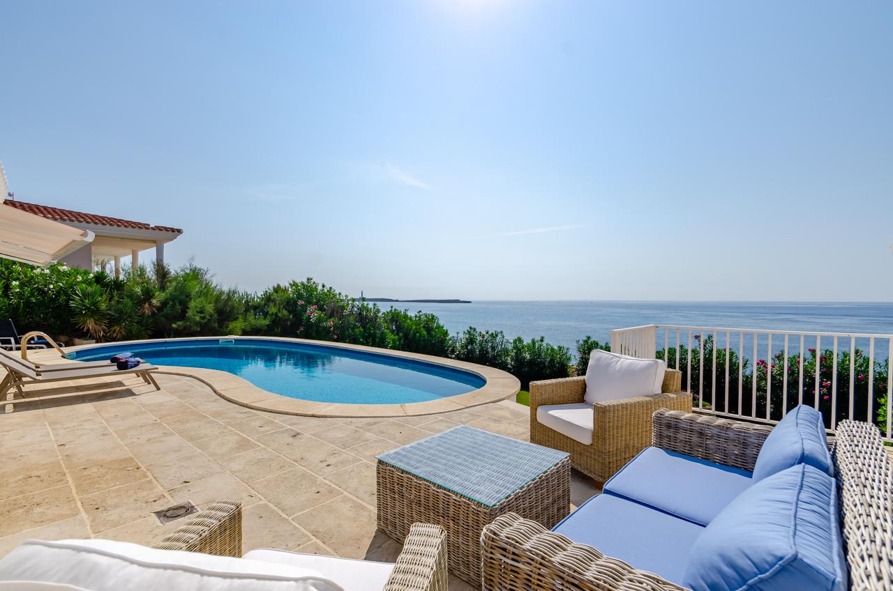Villa Son Tato, est une maison qui ravira vos sens par son emplacement en première ligne, avec une vue spectaculaire sur la mer au sud de Minorque et d'où vous pouvez voir la Isla del Aire à l'entrée du port et son magnifique phare, vous pouvez voir passer des voiliers et des yachts, manger en plein air tout en profitant de vues magnifiques.