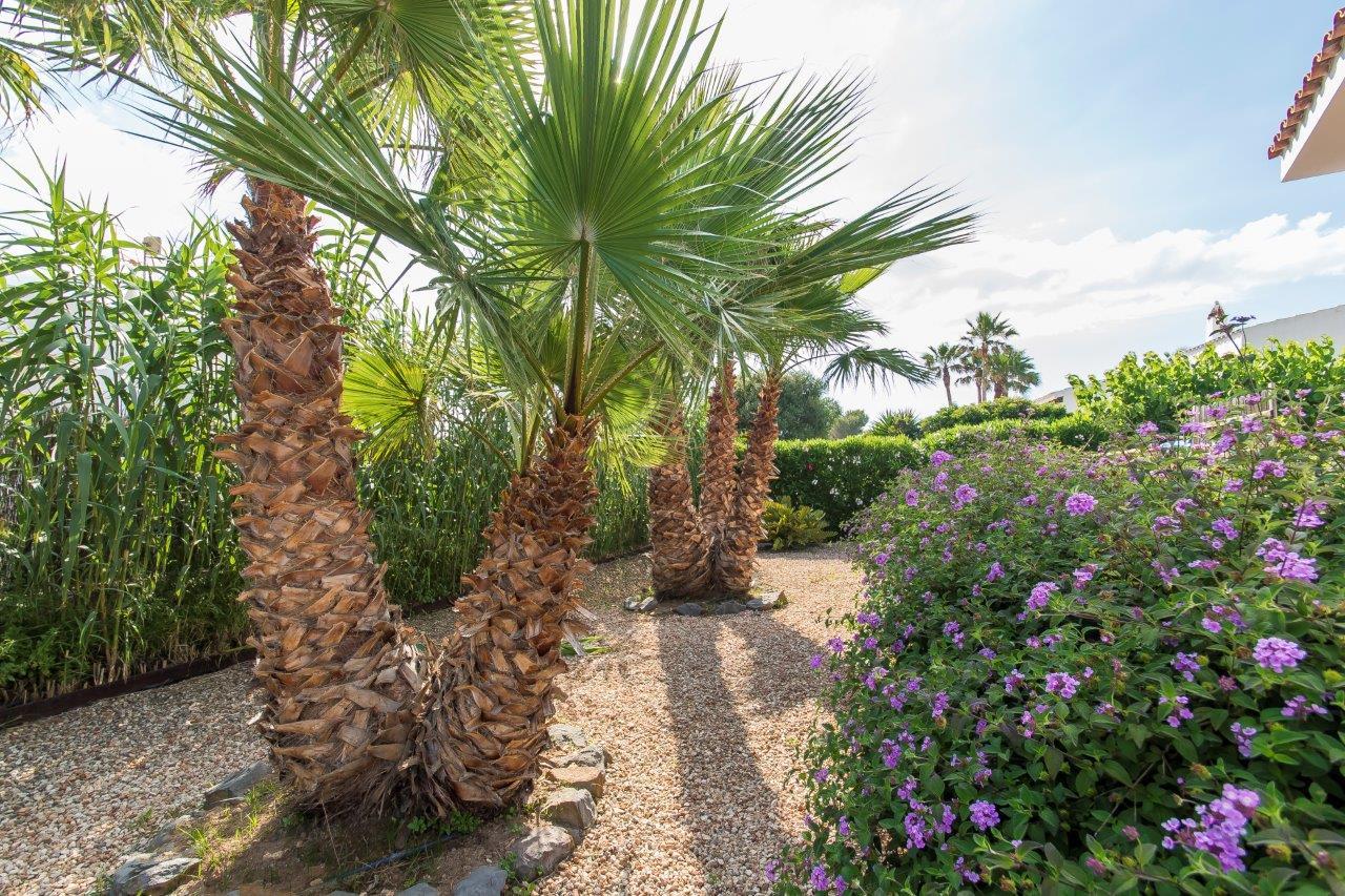 estilo menorquin, con flores y plantas autóctonas con base de gravilla.