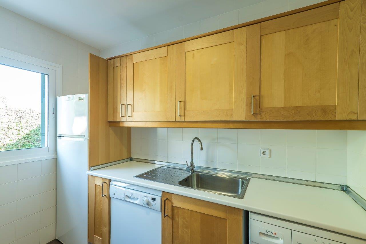 que da acceso directo a la terraza de la piscina. La cocina es práctica y