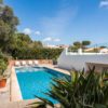 de lavadero con lavadora. Del pasillo distribuye la zona de los 4 dormitorios dobles con aire acondicionado y tres baños independientes. La villa tiene una maravillosa piscina con una amplia zona de terraza, con tumbonas a su alrededor y